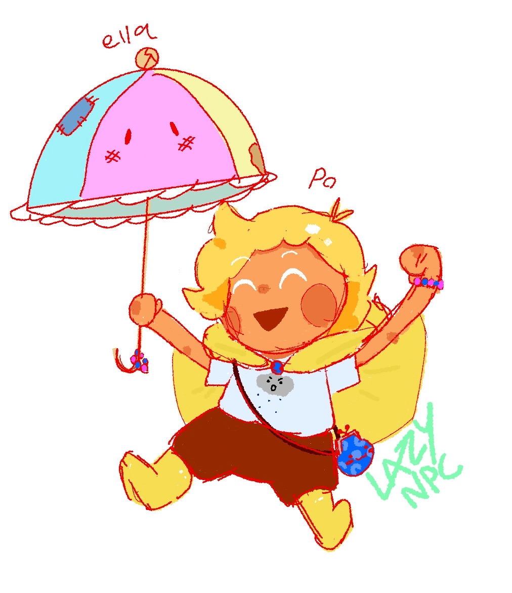 He's inspired by Pancake Cookie from cookie run, and is a simple mute protagonist who will sometimes make silly noises to convey his thoughts.